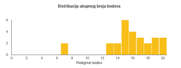 Uspješnost rješavanja zadataka bila je visoka. Većina je ekipa ostvarila rezultate u gornjoj polovici skale, pri čemu se najveći broj sudionika zadržao između petnaest i sedamnaest bodova. Ostvarena su i pojedina maksimalna postignuća, dok je manji broj ekipa postigao manje bodovne vrijednosti. Prosječna je ekipa time pokazala solidno razumijevanje zadataka te razvijene vještine pronalaženja i vrednovanja relevantnih informacija.
