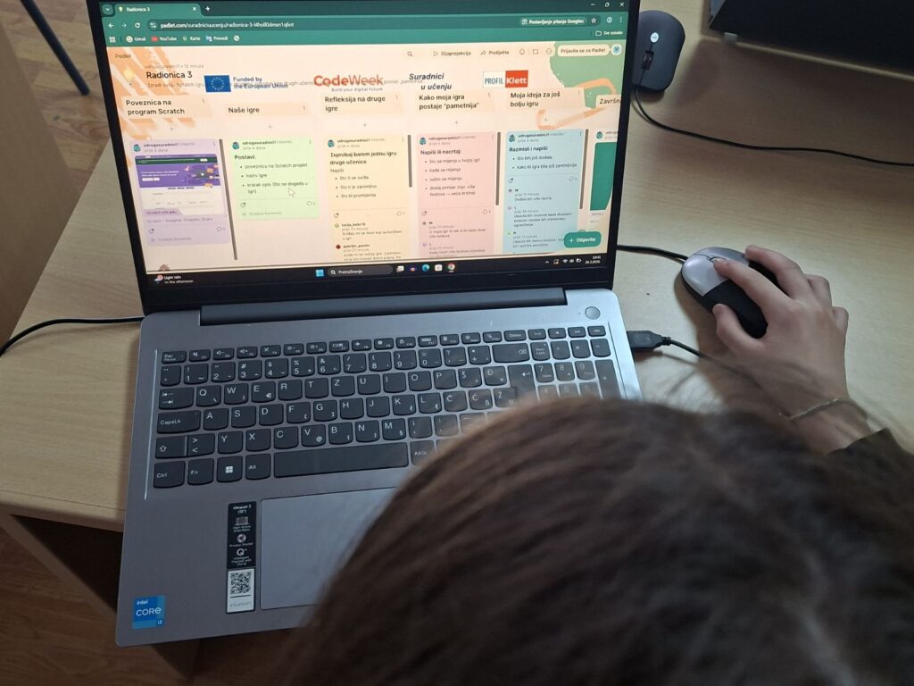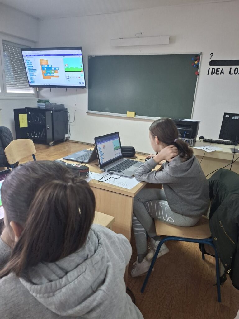 U okviru projekta „Kod za promjenu“, koji je prijavila Udruga Suradnici u učenju uz potporu inicijative EU Code Week, održana je treća radionica programiranja pod nazivom „Programiram u Scratchu: AI lov na ideje“. Na radionici su sudjelovale učenice 4. i 5. razreda Prve osnovne škole Ogulin, a radionicu je vodila učiteljica informatike Valentina Blašković.
