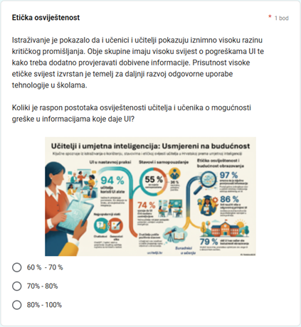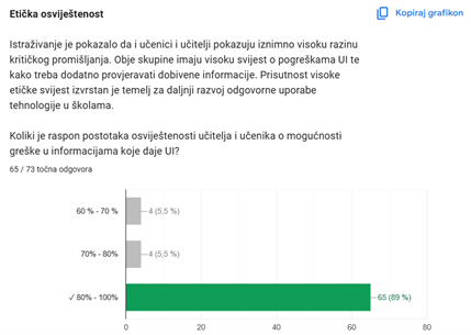 Etička osviještenost – Koliki je raspon postotaka osviještenosti učitelja i učenika o mogućnosti greške u informacijama koje daje UI?