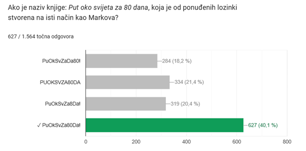Slika 3. Grafički prikaz točnosti odgovora na pitanje UI i učenici (grafikon je preuzet iz brojnije Potrage od ukupno 2 otvorene)