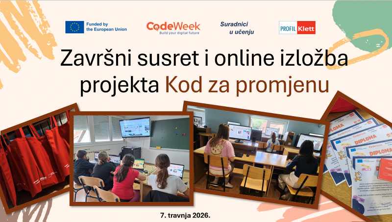 U sklopu projekta „Kod za promjenu“ Udruge Suradnici u učenju koji se provodio uz potporu inicijative EU Code Week, održana je završna online radionica i susret učenica Osnovne škole Matija Gubec Cernik i Prve osnovne škole Ogulin te njihovih učiteljica informatike Kristine Slišurić i Valentine Blašković. Time je uspješno zaključen projekt usmjeren na razvoj digitalnih vještina, računalnog razmišljanja i poticanje djevojčica na aktivnije uključivanje u STEM područje.